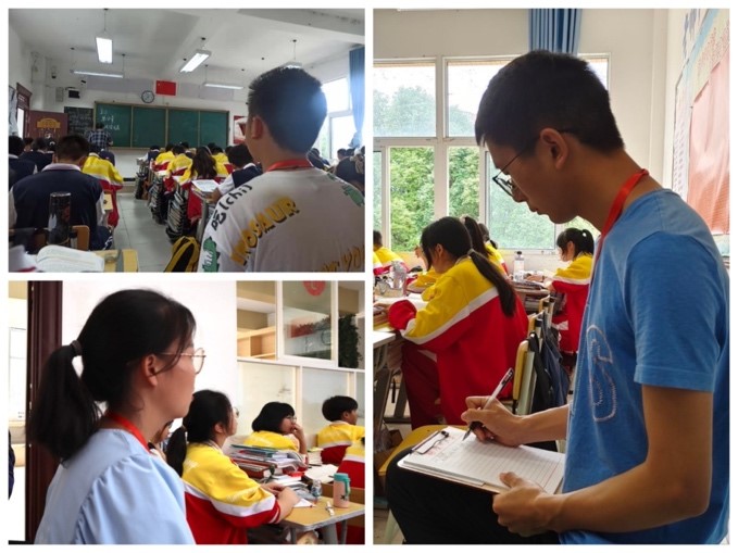 (研支团成员王合龙、李雨涵、陈珍正在进行课堂听课环节)