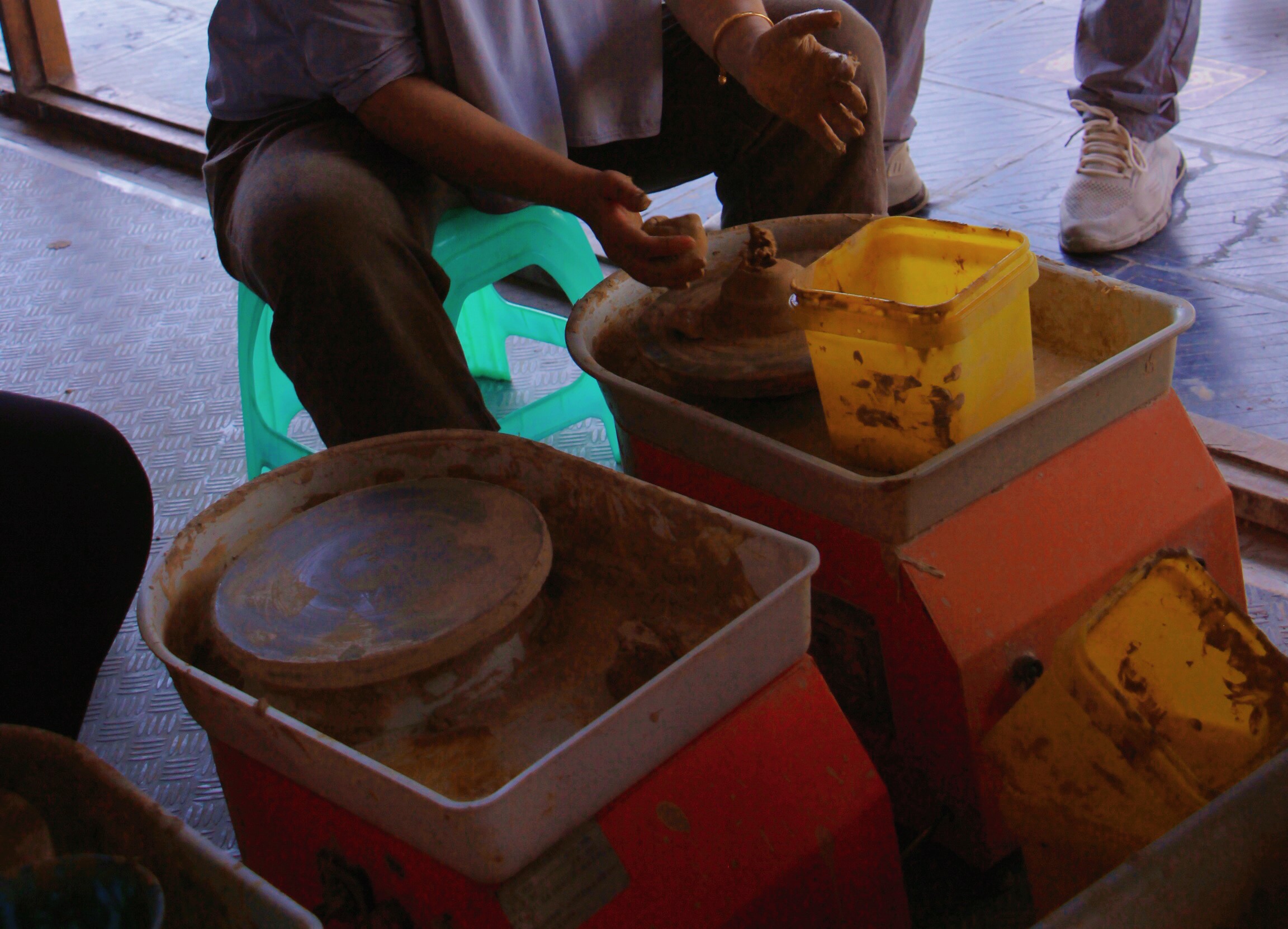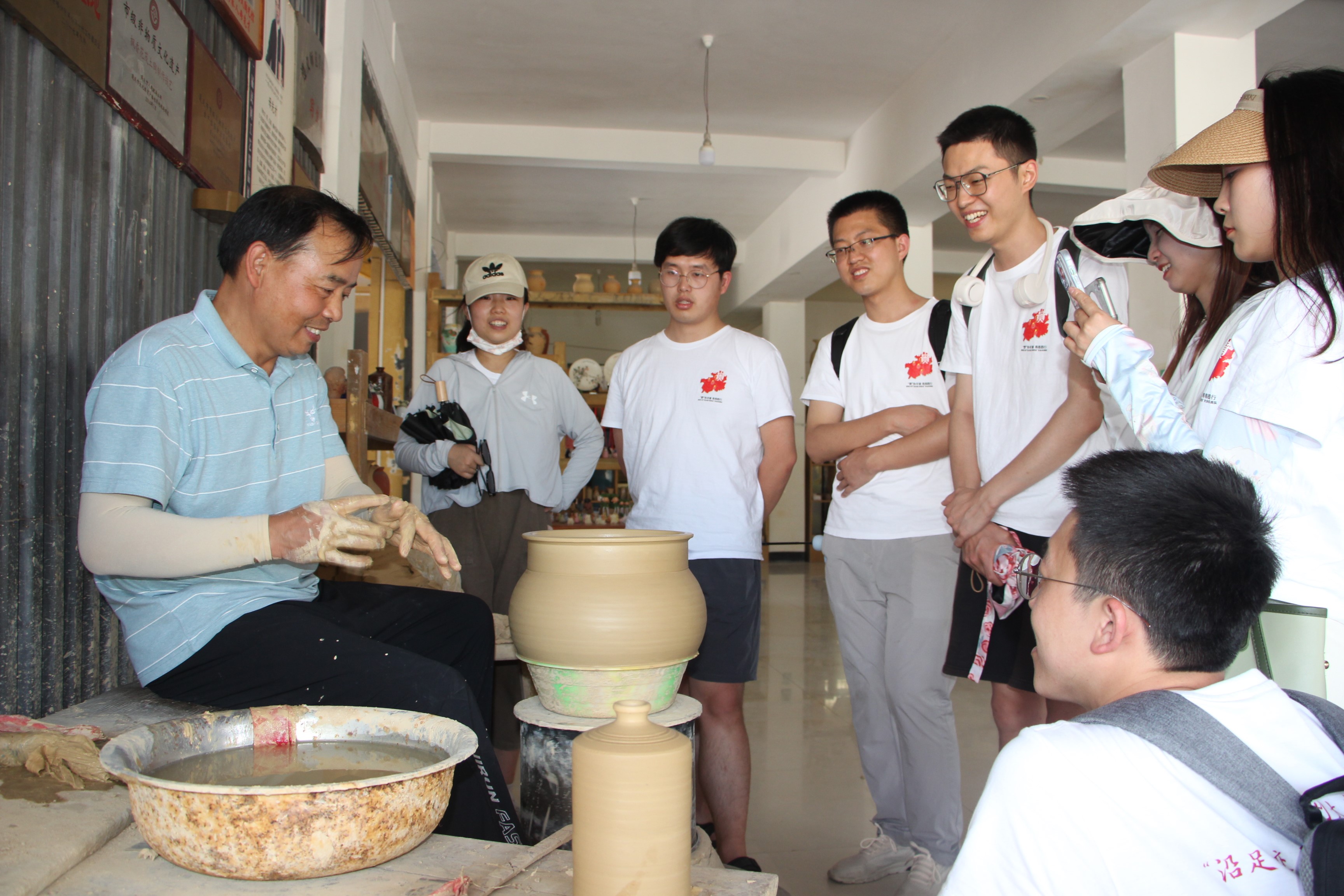 实践队成员任南桦分享制陶心得:“看母师傅制陶时以为很简单,但当自己上手,才发现其中的不易。手打直、轻用力,手指跟泥土摩擦的过程凝聚着土陶技艺匠人对自己作品和未来生活的期待!”
