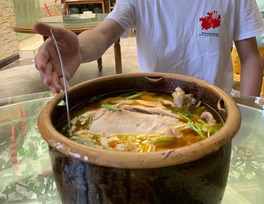 谈话间,母先才又做好一个精致的土陶——盬子,这是当地特色美食盬子鸡的烹饪器皿,盬子用来炖鸡、煲汤味道鲜美,效果绝佳。“习近平总书记来到我们店里,向我嘱咐了两件事”,母先才自豪地说道:“一是要把花茂土陶这项传统技艺传承好,二是要守护住绿水青山。”对于这两个嘱托,母先才铭记于心。