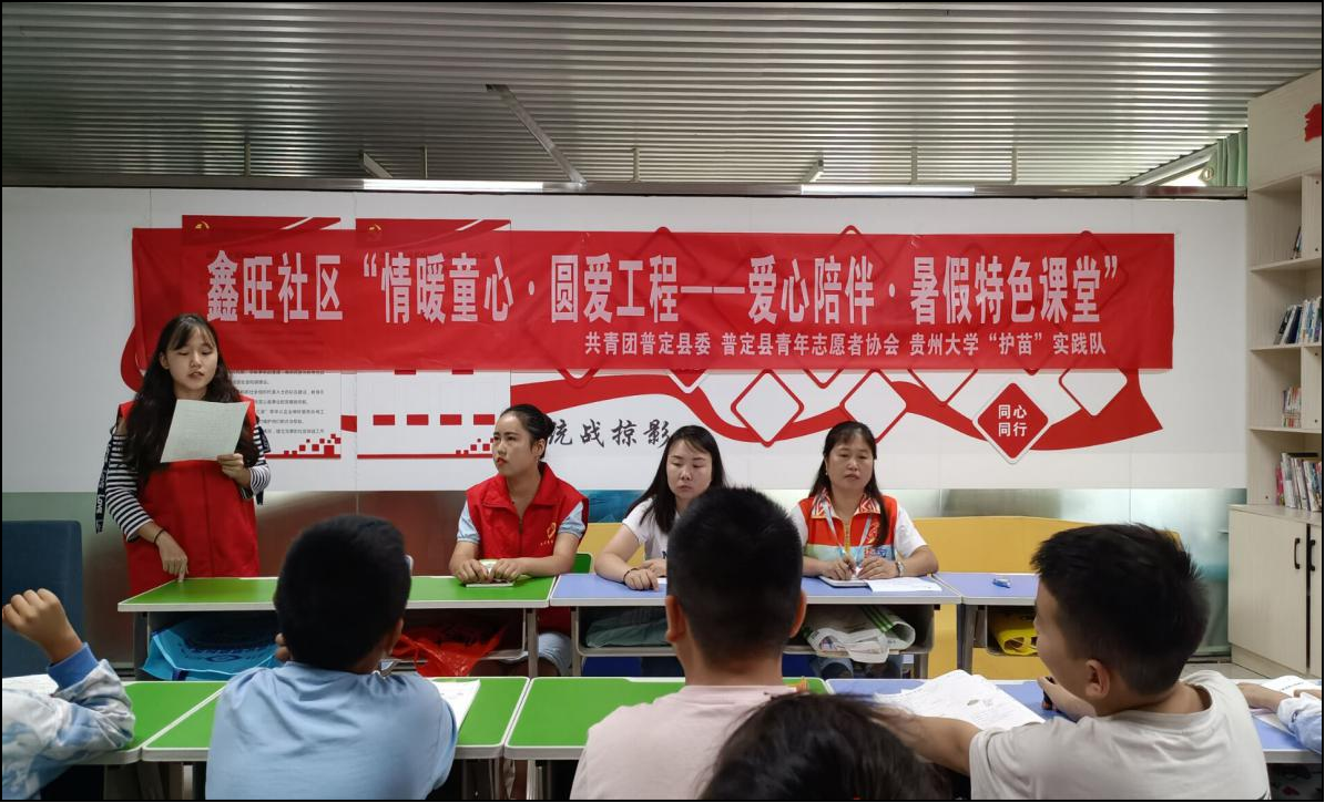 团委网站讯 为深入学习贯彻习近平总书记关于中国少年先锋队建设和关于少年儿童工作的重要论述,7月20日,我校阳明学院护苗实践队与共青团普定县委、普定县青年志愿者协会共同走进安顺市普定县鑫旺社区,面向易地扶贫搬迁而来的留守儿童和困境儿童,“护苗”实践队与当地相关社会力量联合协作探讨如何做到对留守儿童持久有力的关爱。